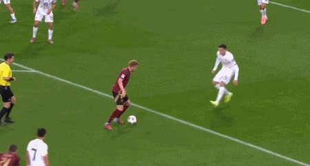 第30分钟,阿什科夫斯基铲倒德布劳内,裁判出示黄牌对其警告