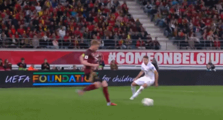 第54分钟,德布劳内禁区前晃开角度起左脚射门,门将飞身将球扑出